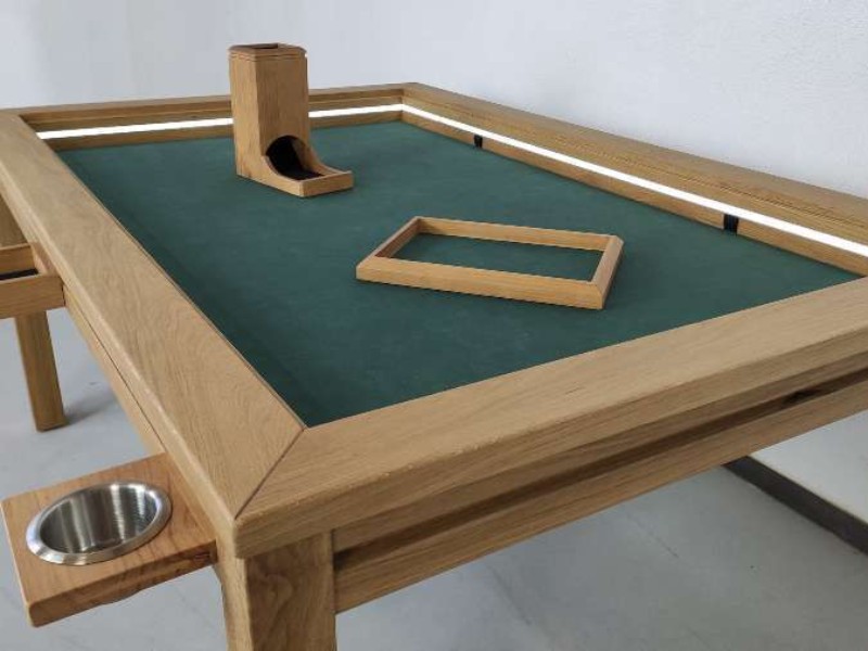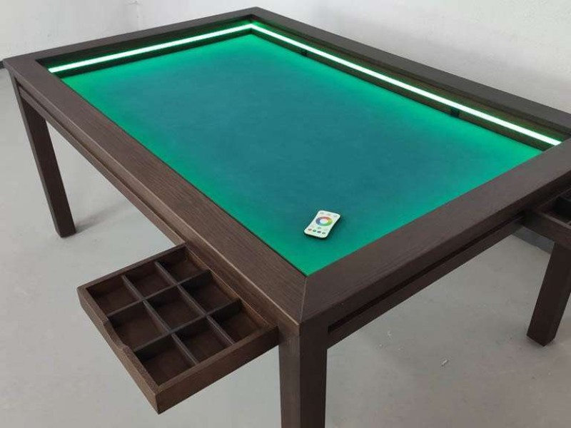 Además, puedes agregar iluminación LED a tus mesas de juegos de roble para crear una increíble atmósfera de juego. Disfruta de una iluminación sin sombras y con intensidad variable, controlada por mando a distancia.